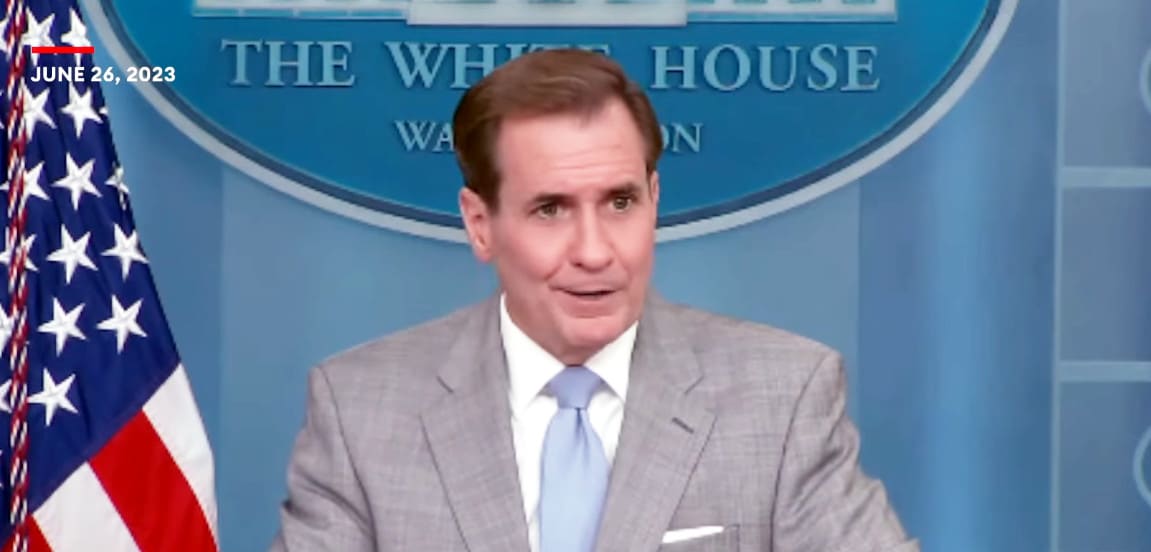Vấn đề được hỏi nhiều nhất trong cuộc họp báo là về “binh biến” của thủ lĩnh Yevgeny Prigozhin cuối tuần qua, nhưng ông John Kirby nói chung đều né tránh trả lời, và gọi đó là “chuyện nội bộ” của Nga. Ông đặc biệt nhấn mạnh thông điệp rằng phương Tây không can thiệp vào việc này, và cũng không có hứng thú sẽ can thiệp vào việc này.