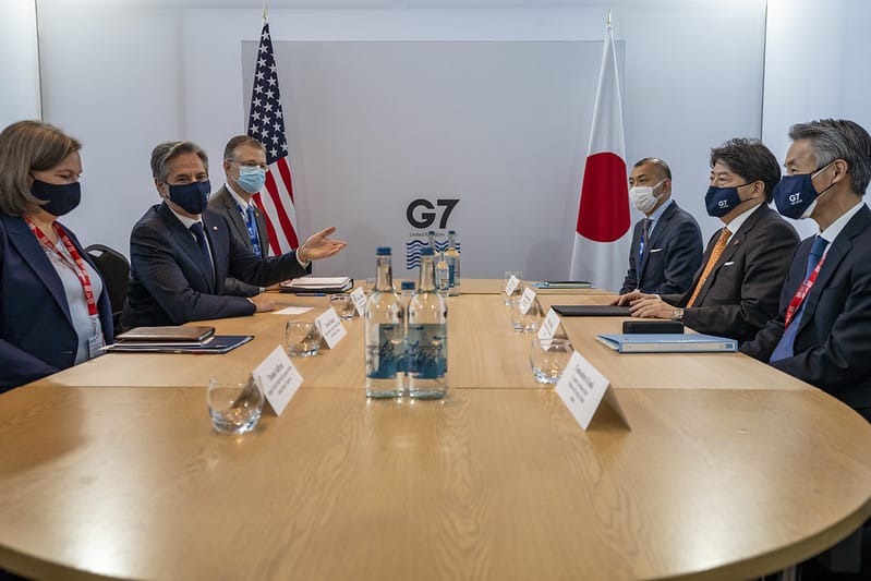 Hai ông Hayashi và Blinken đã có cuộc hội đàm bên lề cuộc họp của các Ngoại trưởng Nhóm G7 tại thành phố Liverpool của nước Anh.