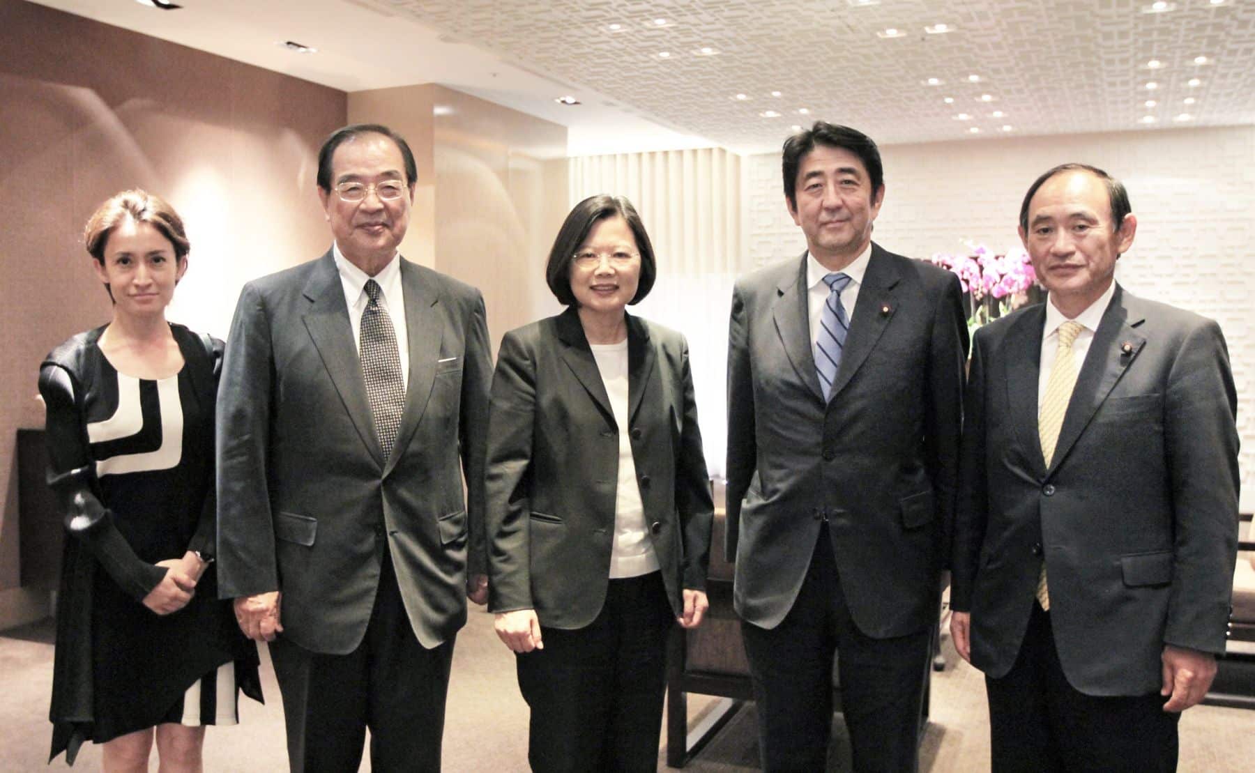 Bà Thái Anh Văn (giữa), đứng cạnh Thủ tướng Nhật Bản Abe Shinzo và Chánh văn phòng nội các Nhật Yoshihide Suga (Ảnh: Japan-forward.com)