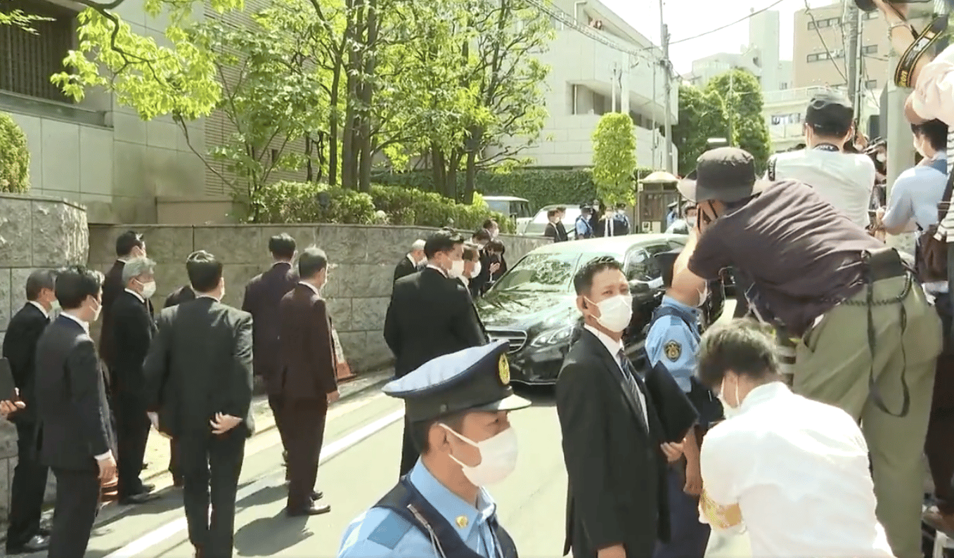 Chiếc xe đã đi vào tư dinh của ông Abe ở thủ đô, trong khi các thành viên cấp cao của Đảng Dân chủ Tự do (LDP) cầm quyền mặc đồ đen, xếp hàng để tỏ lòng thành kính.