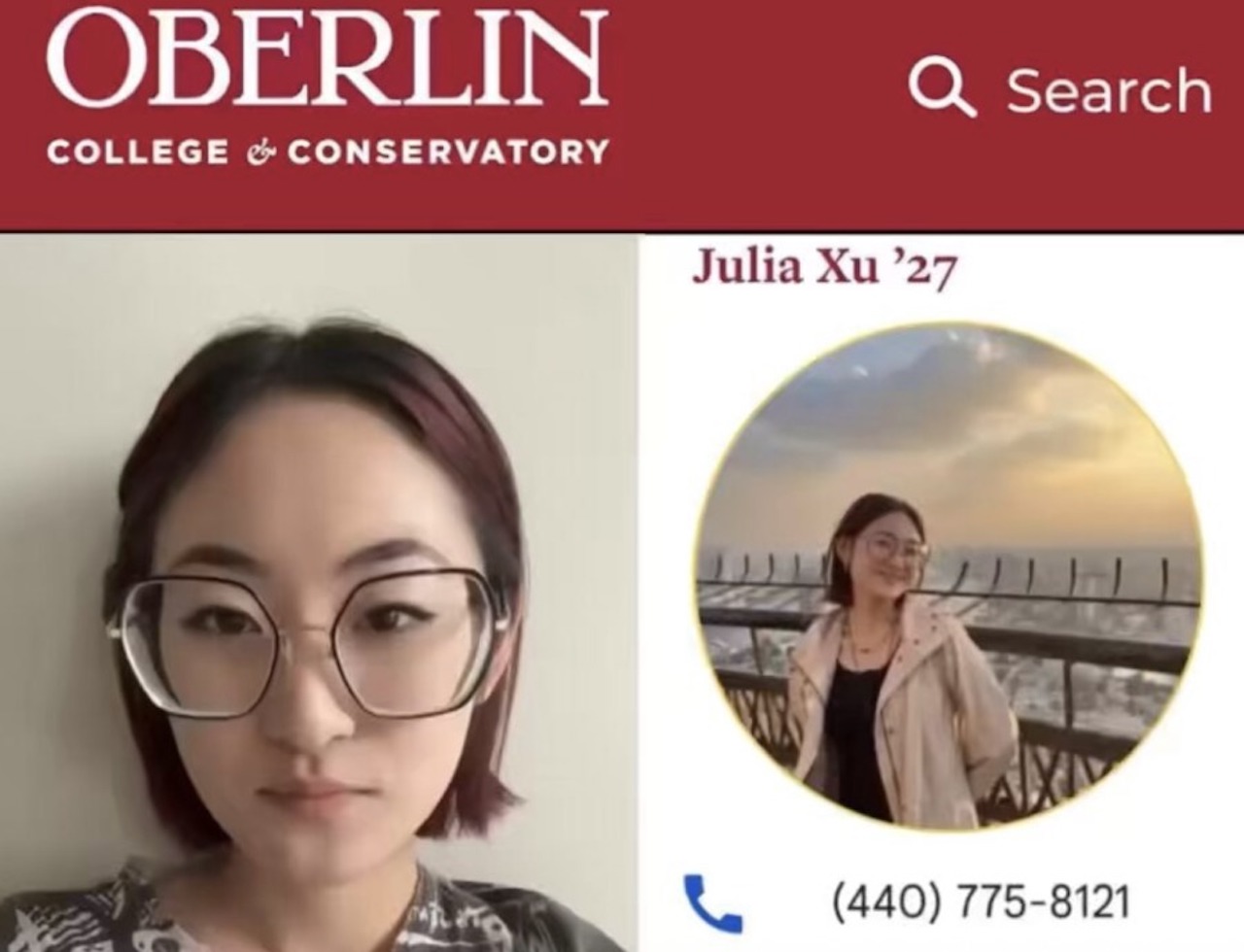 Julia Xu hiện là sinh viên năm hai, chuyên ngành Chính trị và Quan hệ quốc tế tại Oberlin, lớn lên ở bang Connecticut. Cô tự nhận là đồng tính nữ trên mạng xã hội, là thành viên ban cố vấn nhóm sinh viên “Gender, Sexuality and Attraction Initiatives” (Giới tính, Xu hướng tính dục và Sự thu hút). Đồng thời cũng là thành viên tổ chức “Students for a Free Palestine” (Sinh viên vì Palestine Tự do).