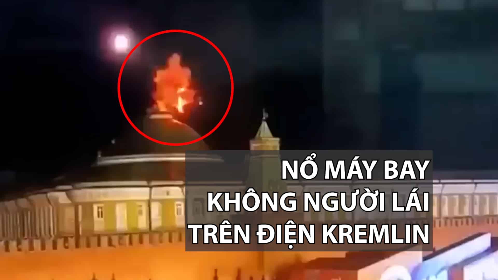 Kênh Baza trên Telegram đã đăng tải đoạn video cho thấy, một vật thể bay phát nổ trước khi tiếp cận mái vòm của tòa nhà Thượng viện Điện Kremlin.