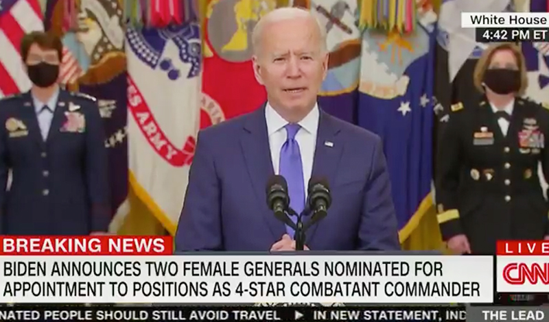 New York Times đưa tin, ngày 8/3 (giờ địa phương), trong một sự kiện tổ chức tại Nhà Trắng, ông Biden tuyên bố đề cử 2 nữ tướng lĩnh quản lý 2 bộ chỉ huy chiến đấu quan trọng nhất của quân đội Mỹ. Tuy nhiên khi phát biểu, ông lại quên tên của Bộ trưởng Quốc phòng Lloyd Austin mà bản thân ông mới bổ nhiệm: “Hơn nữa tôi muốn cảm ơn vị … vị … vị cựu tướng lĩnh này, tôi vẫn luôn gọi ông ấy là tướng quân, nhưng tôi … người quản lý cơ quan này.”