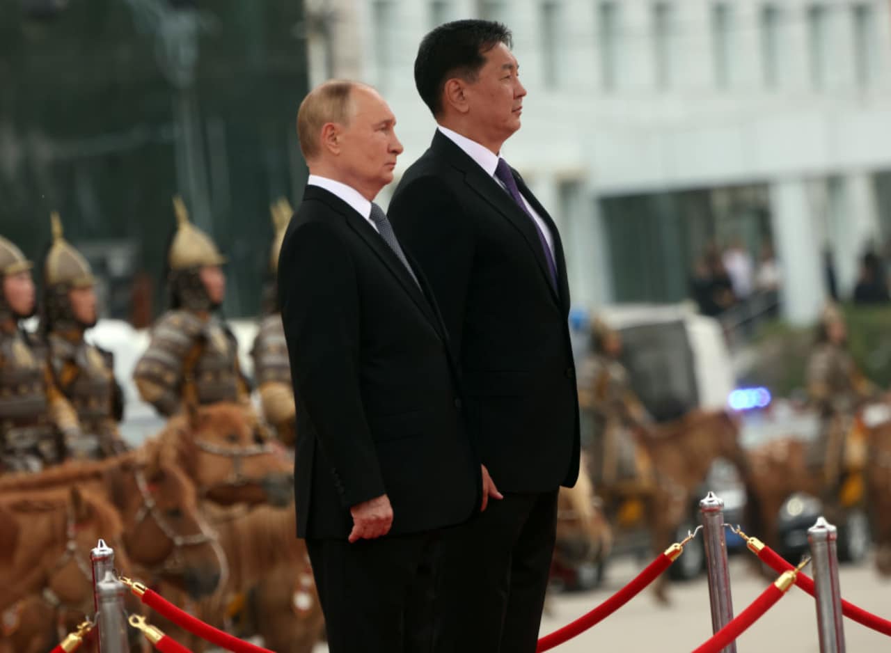 Tại thủ đô Ulaanbaatar, khi bước ra khỏi chiếc limousine, Tổng thống Putin đã được Tổng thống Mông Cổ Ukhnaagiin Khurelsukh chào đón trọng thể, trước khung cảnh trang trọng với đội vệ binh danh dự Mông Cổ cưỡi ngựa, đội mũ sắt chóp nhọn truyền thống.