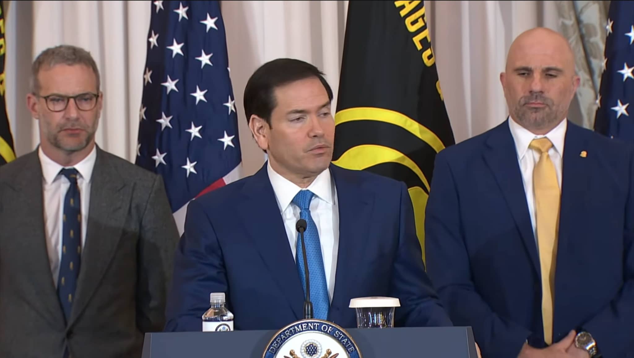 Ngày 9/3/2026, Ngoại trưởng Mỹ Marco Rubio đã có bài phát biểu tại một sự kiện được tổ chức tại Bộ Ngoại giao để vinh danh các con tin người Mỹ và những người bị giam giữ oan sai. (Ảnh chụp màn hình video của Bộ Ngoại giao Mỹ)