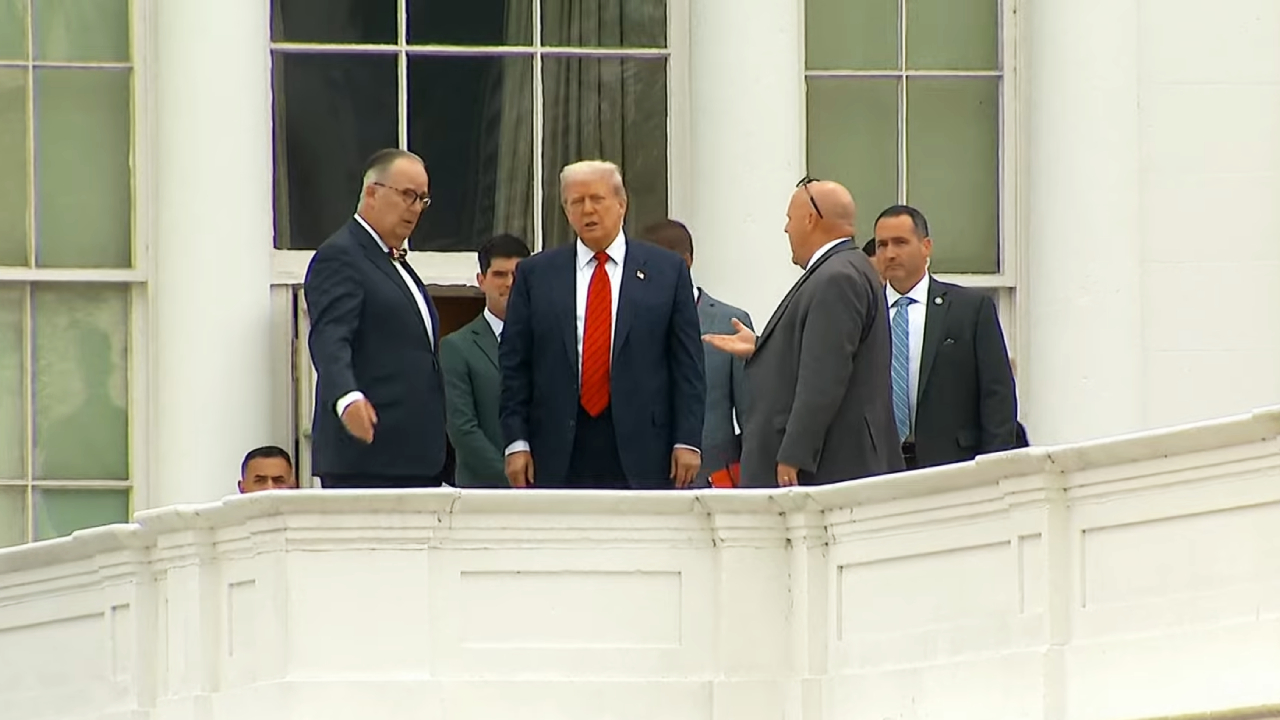 Ông Trump đi cùng một nhóm nhỏ, trong đó có kiến trúc sư James McCrery – người vừa được công bố là phụ trách dự án Phòng Tiệc trị giá 200 triệu đô la. Họ đi bộ chậm rãi, Trump thỉnh thoảng chỉ tay vào mái nhà và mặt đất bên dưới. Ông nhiều lần tiến đến góc gần nhất với nhóm phóng viên, vẫy tay và lớn tiếng trả lời các câu hỏi của họ.
