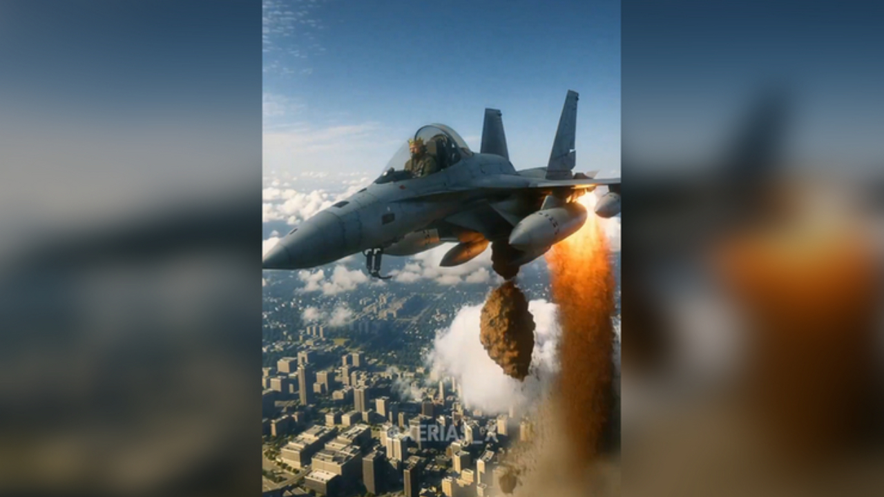 Kèm theo bài hát chủ đề nổi tiếng của “Top Gun” – “Danger Zone” của Kenny Loggins, chiếc máy bay chiến đấu do ông Trump điều khiển, mang dòng chữ “King Trump” trên thân, cất cánh và thả thứ trông như bùn nâu sền sệt, sô-cô-la nóng hoặc phân không rắn lên nhóm người tụ tập ở thành phố New York.