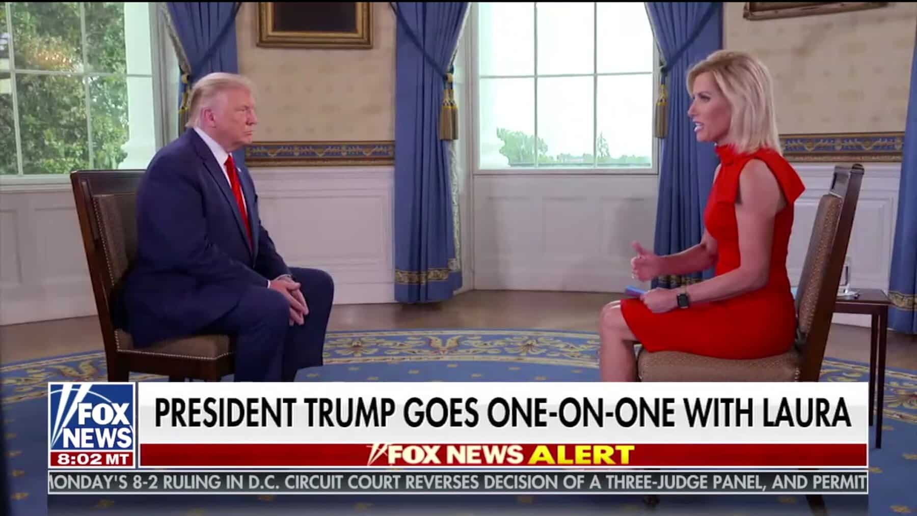 Trong cuộc trả lời phỏng vấn người dẫn chương trình Laura Ingraham của Fox News, ông Trump nói: “Họ đã tiến hành một vụ đảo chính chống lại Tổng thống Mỹ. Họ đã bước vào và họ nói với ông ấy, ‘ông sẽ rời đi’. ‘Ông đang tụt hạng trong các cuộc thăm dò, 17 điểm’. Điều đó giống như khi bạn đang trong một trận chiến với ai đó, và bạn thực sự đang thắng, và họ đã đưa ông ta ra ngoài và họ thay người khác vào. Chưa ai từng thấy điều như này trước đây. Đây là một vụ đảo chính”.