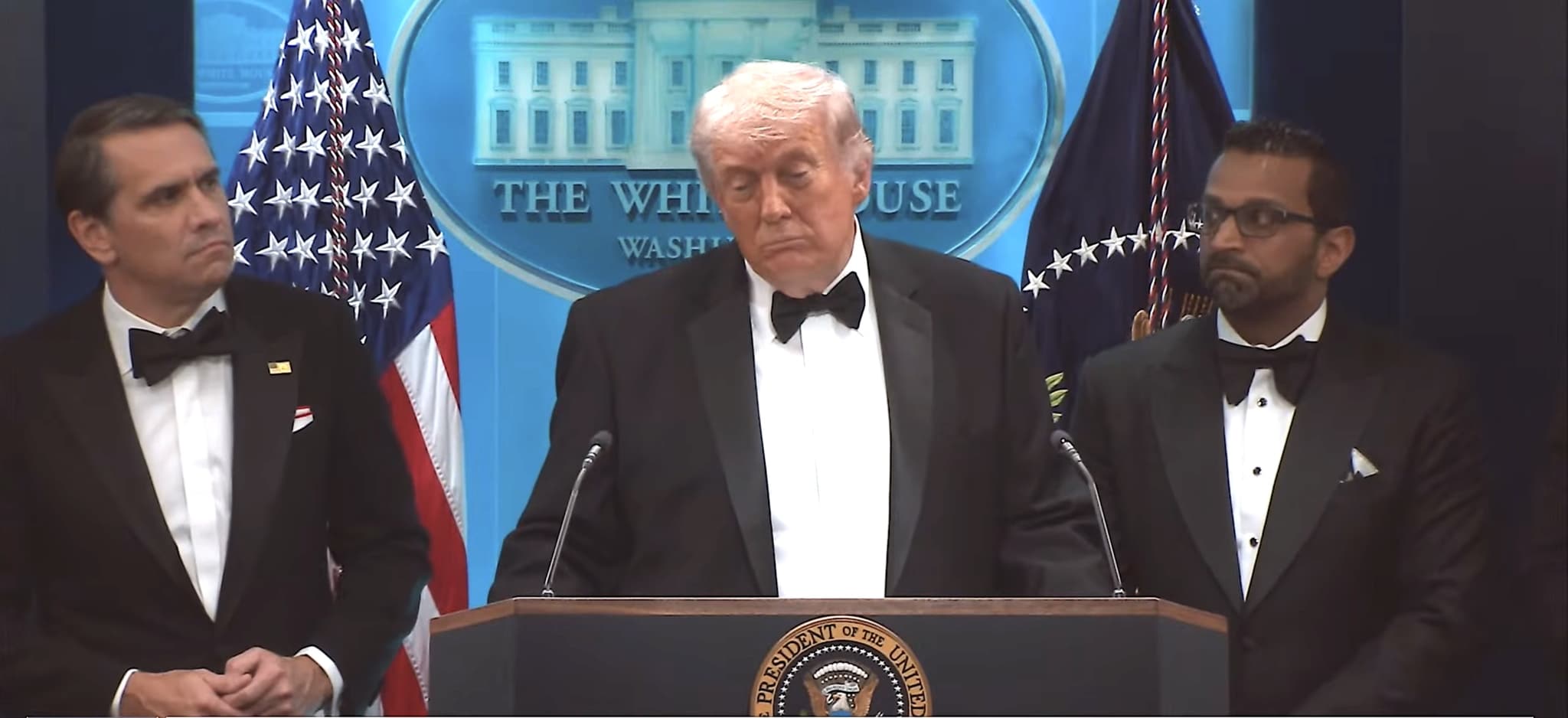 Khoảng nửa giờ sau, ông Trump trở về Nhà Trắng và mở cuộc họp báo, thuật lại chi tiết diễn biến, đồng thời trả lời hàng loạt câu hỏi của phóng viên. Quyền Bộ trưởng Tư pháp Todd Blanche và Giám đốc FBI Kash Patel cũng có mặt cùng ông.