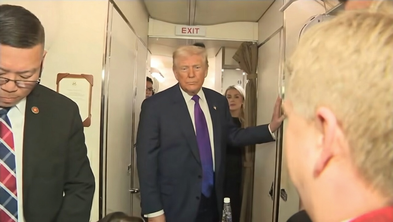 Tổng thống Trump trả lời phóng viên trên chuyên cơ Air Force One. (Ảnh chụp màn hình video)