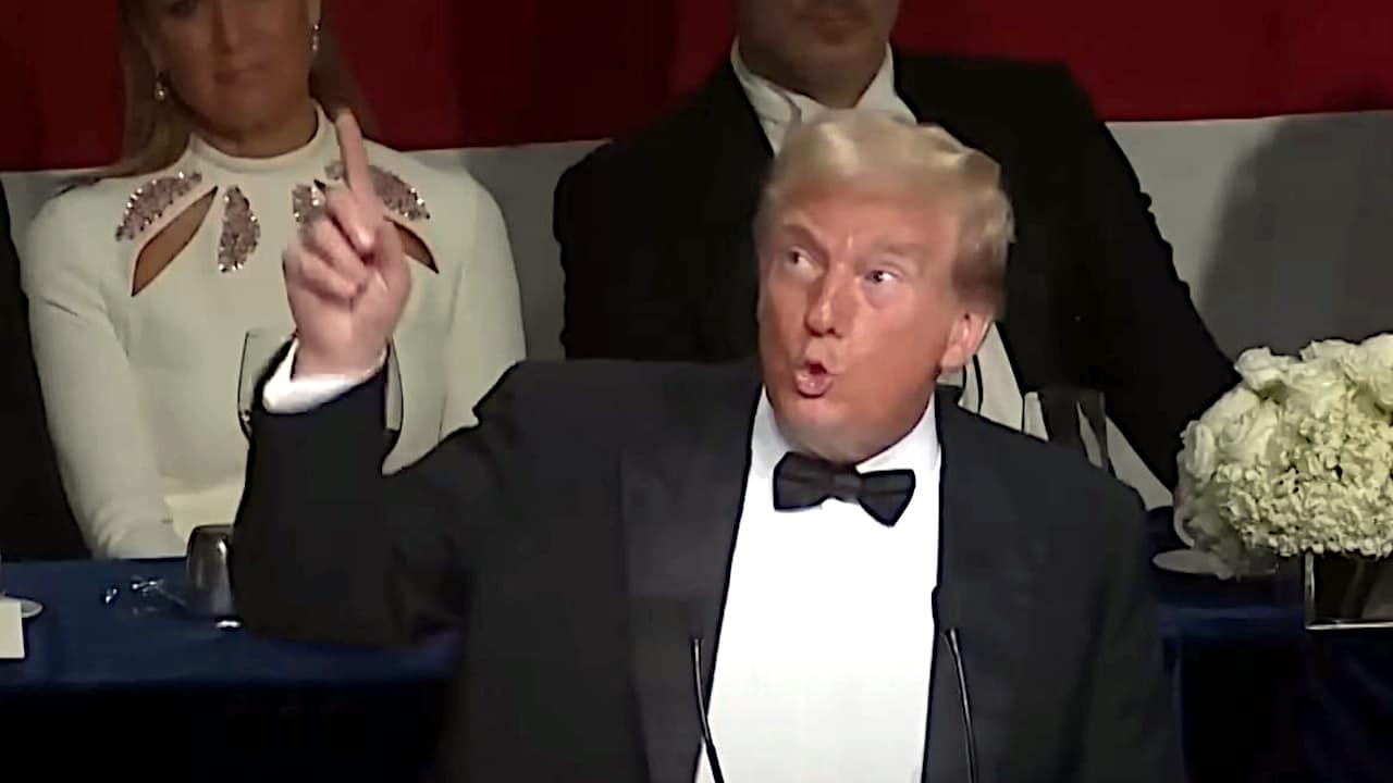 Ứng viên tổng thống Donald Trump nói chuyện hài hước trong tiệc tối tổ chức bởi Al Smith Memorial Foundation, 18/10/2024 (ảnh cắt từ video trên mạng xã hội)