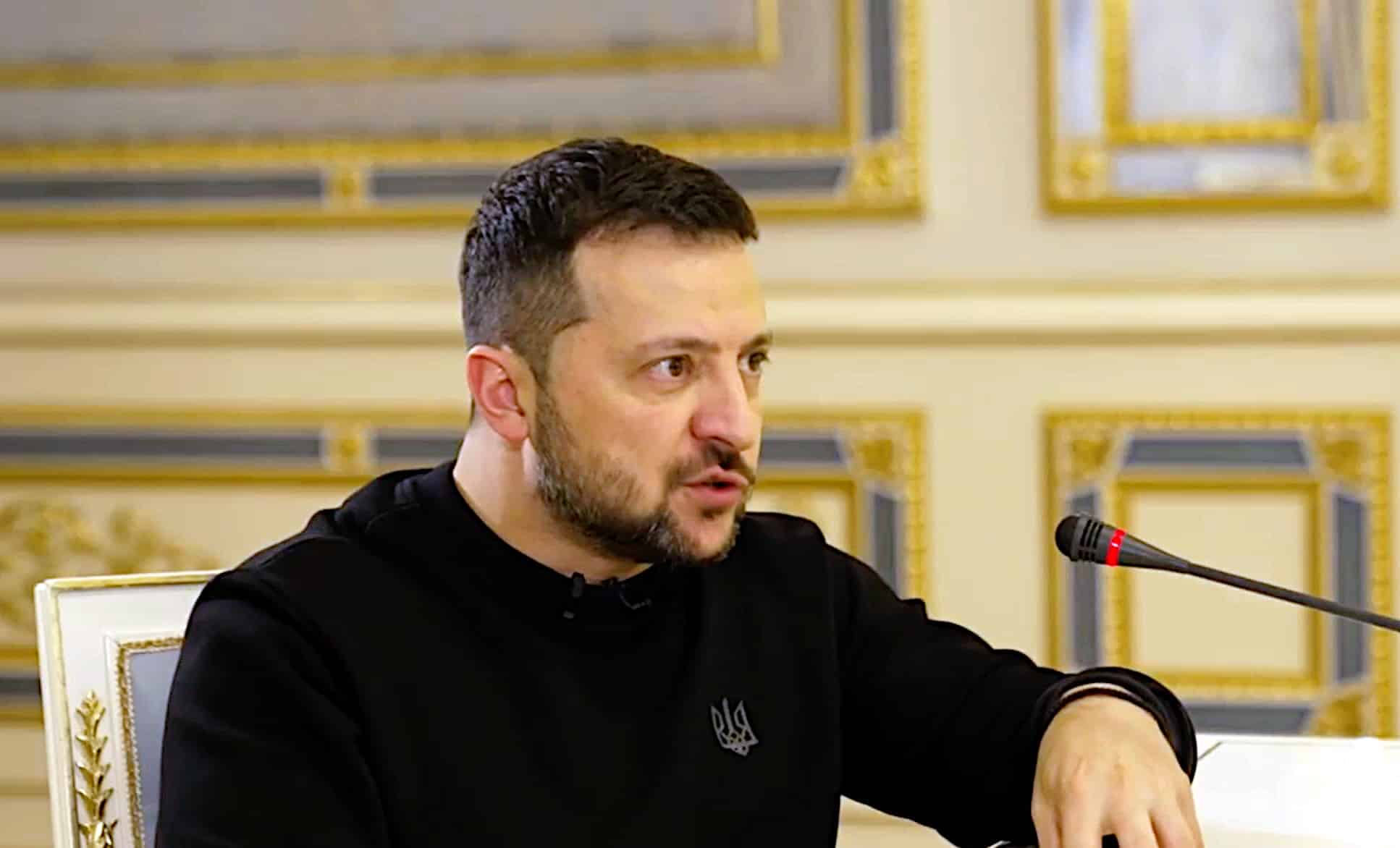 Tờ The Sun đã tới tận nơi mà họ gọi là “bảo lũy” (fortress) ở Kiev của ông Zelensky, và tiến hành phỏng vấn vị tổng thống, người xuất hiện trong ống kính với bộ “trang phục biểu tượng” (trademark sweatshirt) màu xanh lá đậm có gắn hình chiếc đinh ba của Ukraine.