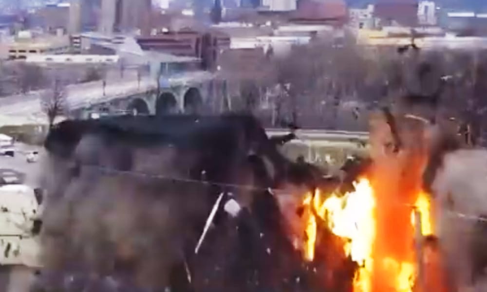 Vụ nổ đã tạo ra một cột mảnh vỡ, ngọn lửa và bụi bắn lên không trung, như thể hiện trong video ghi được từ camera.