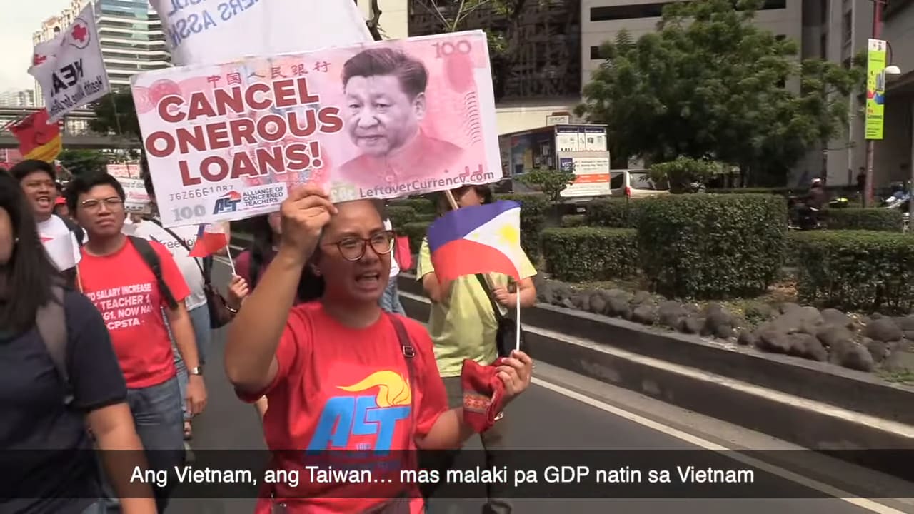 Ngoài vấn đề biển Đông, những người biểu tình còn bày tỏ lo ngại về các khoản vay của Trung Quốc để đầu tư cơ sở hạ tầng tại Philippines, trong đó có dự án xây đập khổng lồ.