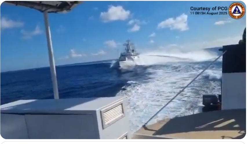 Đoạn video do Manila công bố cho thấy một tàu của Lực lượng bảo vệ bờ biển Trung Quốc đuổi theo một tàu tuần tra của Philippines trong khi phun vòi rồng trước khi đâm vào một tàu của Hải quân Quân đội Giải phóng Nhân dân đang cắt ngang.