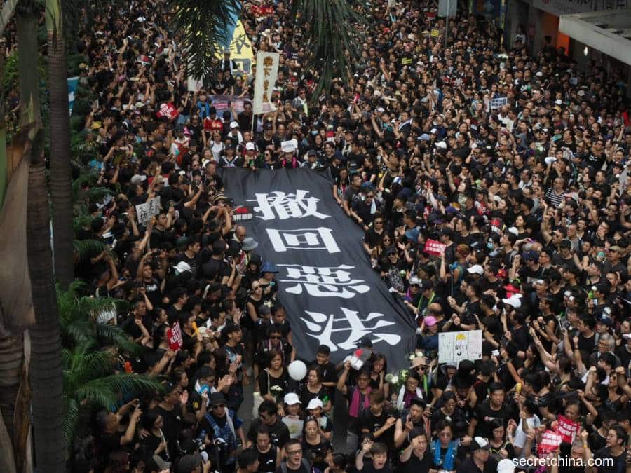 Ngày 16/6/2019, Mặt trận Nhân dân về Nhân quyền (CHRF) tại Hồng Kông đã tổ chức tuần hành chống dự luật dẫn độ, yêu cầu bà Trưởng Đặc khu Lâm Trịnh Nguyệt Nga từ chức và kêu gọi người Hồng Kông mặc áo đen và treo ruy băng trắng ở đầu các đường phố (Nguồn: Vision Times).