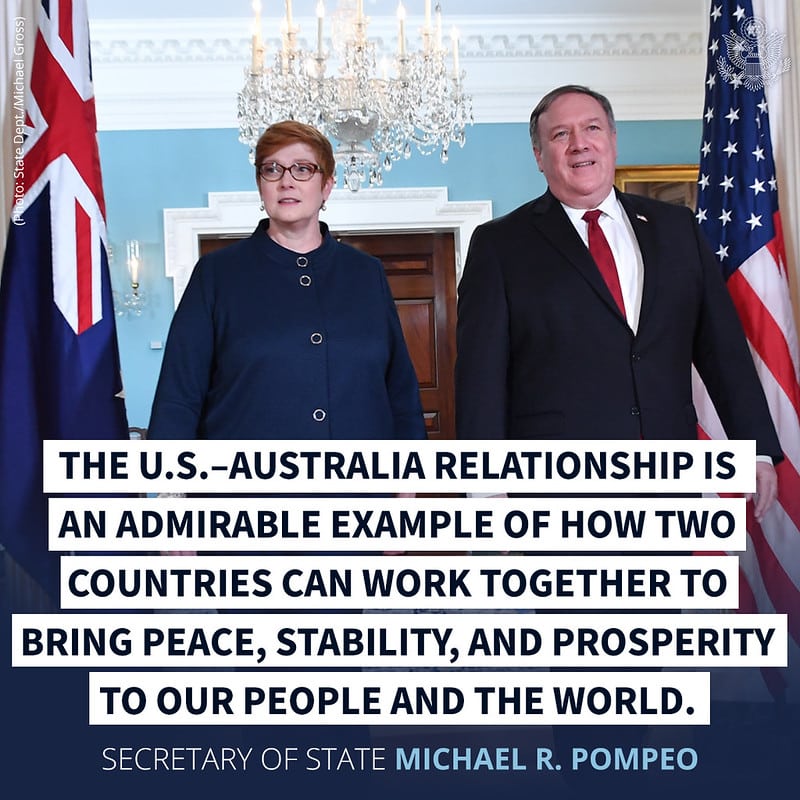 Sau cuộc họp giữa ông Pompeo với bà Payne, Bộ Ngoại giao Mỹ cho biết hai ngoại trưởng đã thảo luận những lo ngại về “hành động gây hại” trong khu vực của Trung Quốc.