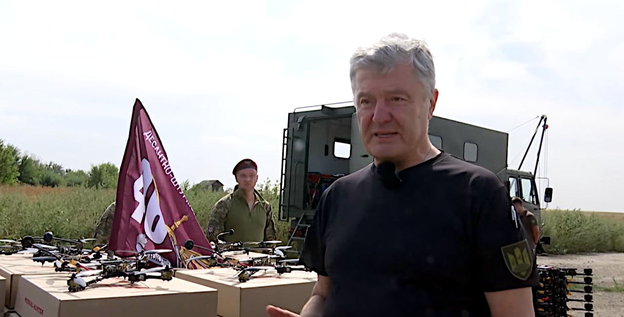 Như video được đăng trên mạng xã hội, kênh Petro Poroshenko, có thể thấy ông Poroshenko nói chuyện với các binh sỹ tiền tuyến khi nhận chuyến hàng từ quỹ Poroshenko Foundations đưa tới hôm Thứ Năm 29/8/2024. Ông nói chuyến hàng này có hơn 1.000 drone (máy bay không người lái) (800 drone tấn công, còn lại là drone trinh sát), và một số thiết bị quân sự khác như phụ tùng cho kết nối mạng vệ tinh Starlink, và xe quân sự địa hình. Nguồn của chuyến hàng giao tặng là quyên góp từ những người tình nguyện.