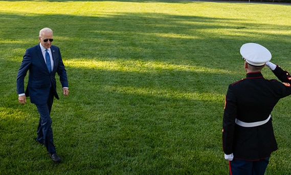 Hình ảnh ngày 16/8/2021, sau khi trở lại Nhà Trắng để phát biểu về việc Taliban tiếp quản Afghanistan, ông Biden đi bộ đến chiếc máy bay Marine One và quay trở lại Trại David. (Ảnh: Getty).