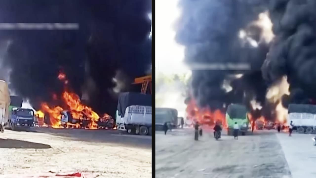- Video đội xe tải chở hàng Trung Quốc bị đốt ở Myanmar: