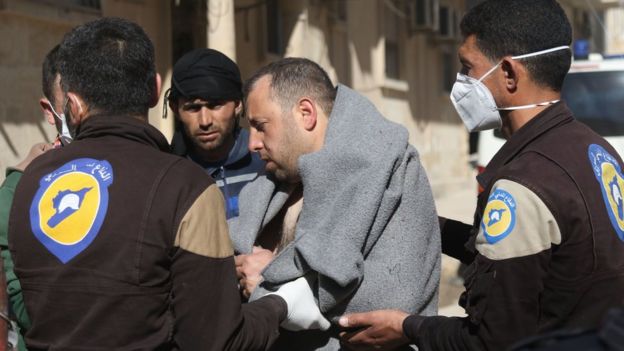 SOHR cáo buộc máy bay của Nga hoặc chính quyền Syria là thủ phạm gây ra cuộc tấn công kinh khủng này nhắm vào địa phận của phe nổi dậy. Tuy nhiên, quân đội Syria đã phủ nhận việc chính quyền Damascus sử dụng loại vũ khí hóa học này, Bộ Ngoại giao Nga cũng khặng định họ không có hoạt động ở khu vực bị tấn công, theo BBC.