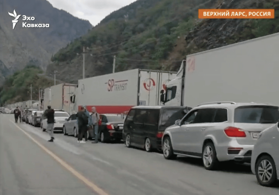 Ekho Kavkaza, một chi nhánh của Đài Châu Âu Tự do có trụ sở tại Caucasus, đã đưa lên đoạn video vào cuối ngày thứ Tư cho thấy một hàng dài chờ đợi tại trạm kiểm soát.