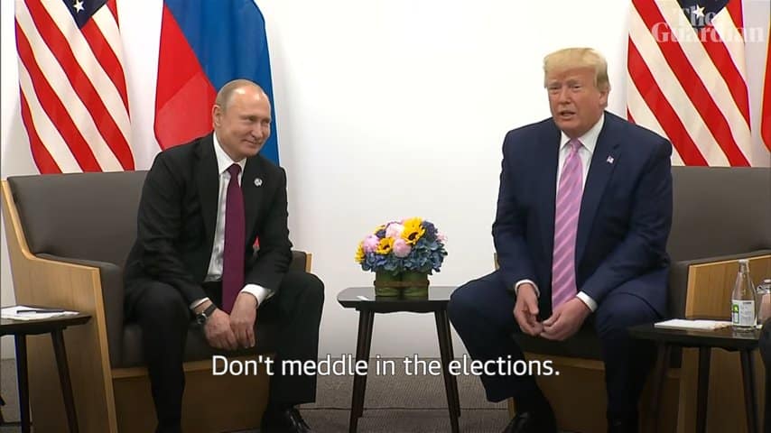 Khi ngồi xuống cạnh Tổng thống Nga trước khi hai bên tiến hành cuộc họp song phương riêng tư tại G-20 Nhật Bản, phóng viên hỏi ông Trump: “Ông sẽ nói với Nga không can thiệp vào bầu cử 2020 chứ?”