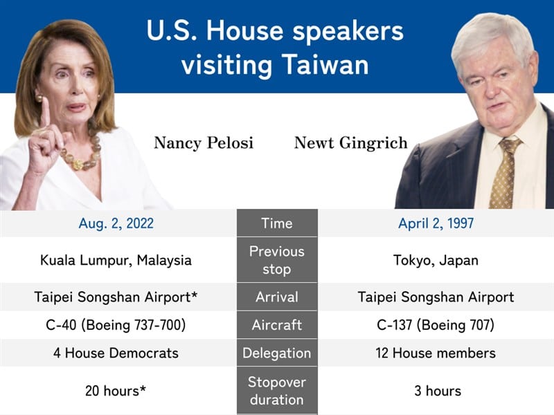 Chủ tịch Hạ viện xếp hàng thứ 3 trong danh sách kế vị Tổng thống Hoa Kỳ và bà Pelosi là chính trị gia Hoa Kỳ cấp cao nhất đến thăm hòn đảo kể từ chuyến đi của ông Gingrich năm 1997. Hôm thứ Ba, đại sứ Trung Quốc tại Mỹ Qin Gang nói với CNN rằng chuyến thăm năm 1997 là “hoàn toàn sai lầm”.