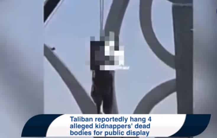 Taliban treo thi thể tội phạm ở quảng trường chính của thành phố Herat (Ảnh chụp màn hình video)