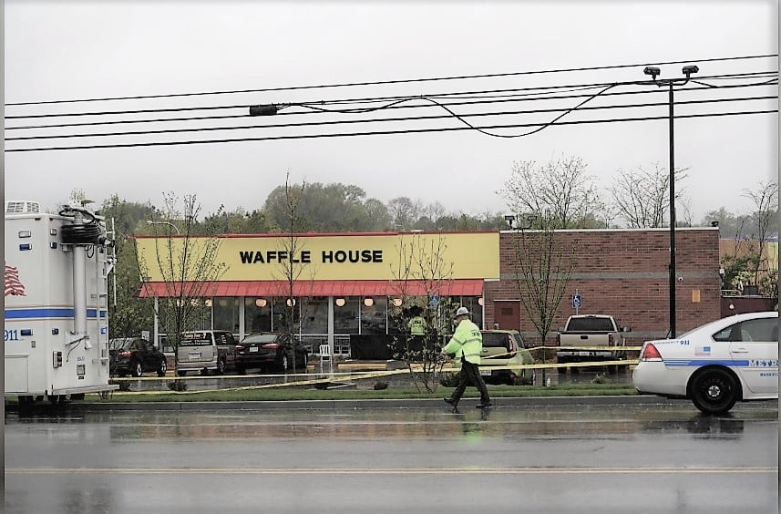 Tay súng lao tới khuôn viên nhà hàng Waffle House lúc khoảng 3:25 sáng ngày 22/4 (3:25 chiều 22/4 giờ Việt Nam) và khai hỏa một khẩu súng trường bán tự động. Vụ xả súng đã làm 4 người thiệt mạng và một số người khác bị thương, trong đó có một người đang trong điều kiện nguy cấp.