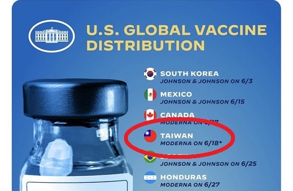 Bài tweet được Nhóm Phản ứng COVID-19 của Nhà trắng đăng tải vào thứ Ba kèm hình ảnh hiển thị cờ các quốc gia nhận vắc-xin do Hoa Kỳ tài trợ, bao gồm cờ Đài Loan. Bài tweet này dường như đã bị xóa vào thứ Tư, với nhiều suy đoán cho rằng do sự nhạy cảm của vấn đề Đài Loan bởi đến nay Hoa Kỳ vẫn chưa công nhận chính thức hòn đảo.