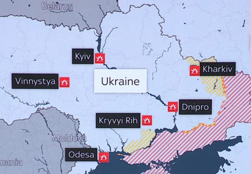 Một nguồn tin khác cho biết phòng không Ukraine đã bắn chặn được tên lửa Kh-22, dẫn đến tên lửa phát nổ và sau đó rơi vào khu cư dân ở Dnipro.