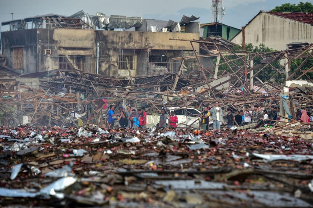Những bức ảnh về hiện trường do AFP chụp cho thấy nhà kho chỉ còn là đống đổ nát và kim loại cong queo.