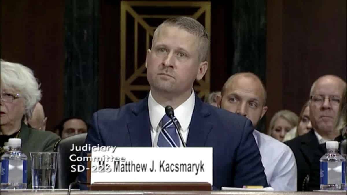 Thẩm phán Matthew Kacsmaryk trong phiên điều trần đề cử của ông trước cơ quan tư pháp liên bang tại Tòa nhà Quốc hội Hoa Kỳ ở Washington, vào ngày 13 tháng 12 năm 2017. (ỦY BAN TƯ PHÁP THƯỢNG VIỆN HOA KỲ)