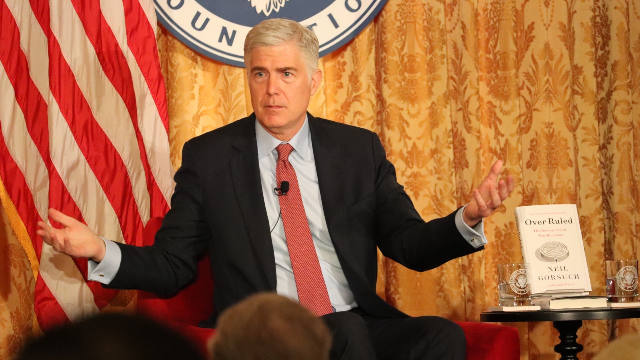 Ông Gorsuch cho biết, việc phụ thuộc quá nhiều vào luật pháp có nhiều lý do, có thể liên quan đến sự tan vỡ về cộng đồng và lòng tin của đất nước. Ông than thở rằng trong những thập kỷ gần đây ngày càng có ít người đi nhà thờ hơn, ít câu lạc bộ xã hội hơn và sự chia rẽ chính trị sâu sắc hơn.