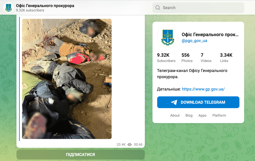 “Các công tố viên và nhân viên cảnh sát đang làm việc tại hiện trường vụ án”, bài đăng viết. “Mọi nỗ lực đang được thực hiện để xác định hoàn cảnh của mỗi từng hành vi tội ác chiến tranh và những kẻ liên quan đến cuộc xâm lược của Nga để đưa chúng ra trước công lý.”