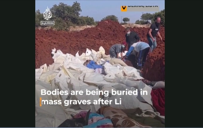 Phát ngôn viên của bộ nội vụ của chính phủ điều hành miền đông Libya, ông Tarek al-Kharraz hôm thứ Tư (13/9, giờ địa phương) đã nói với hãng tin AFP rằng cho đến nay đã phát hiện được 3.840 người chết, trong đó có 3.190 thi thể đã được chôn cất. Trong số các nạn nhân tử vong này, có ít nhất 400 người nước ngoài, phần lớn là người Sudan và Ai Cập.