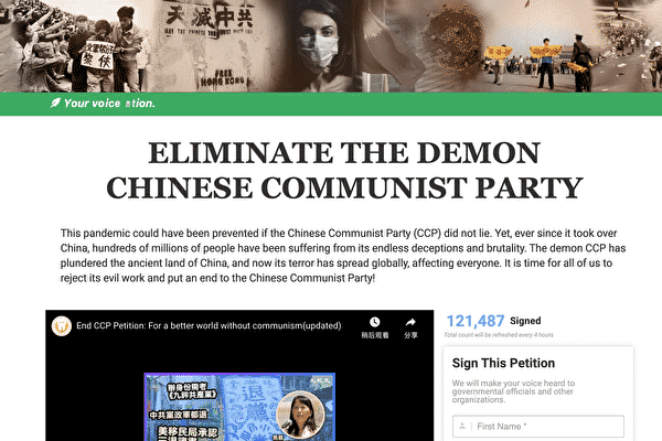 Trên trang web ký tên Thư khởi xướng “Đả đảo ác ma ĐCSTQ” có viết: “Vì tương lai của chúng ta, vì để thế giới tốt đẹp hơn, để ĐCSTQ không còn tồn tại, xin hãy cùng ký tên: Chấm dứt ĐCSTQ”.