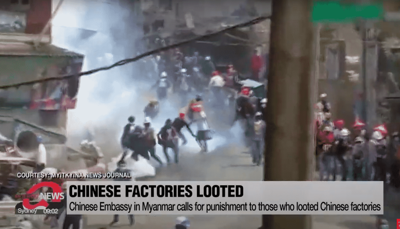Theo tờ Thời báo Hoàn Cầu của Trung Quốc, đã có tổng cộng 32 nhà máy do Trung Quốc đầu tư đã bị đốt phá trong các cuộc tấn công “ác độc” nhằm vào công ty Trung Quốc ở Yangon, Myanmar, tính đến trưa thứ Hai (15/3).
