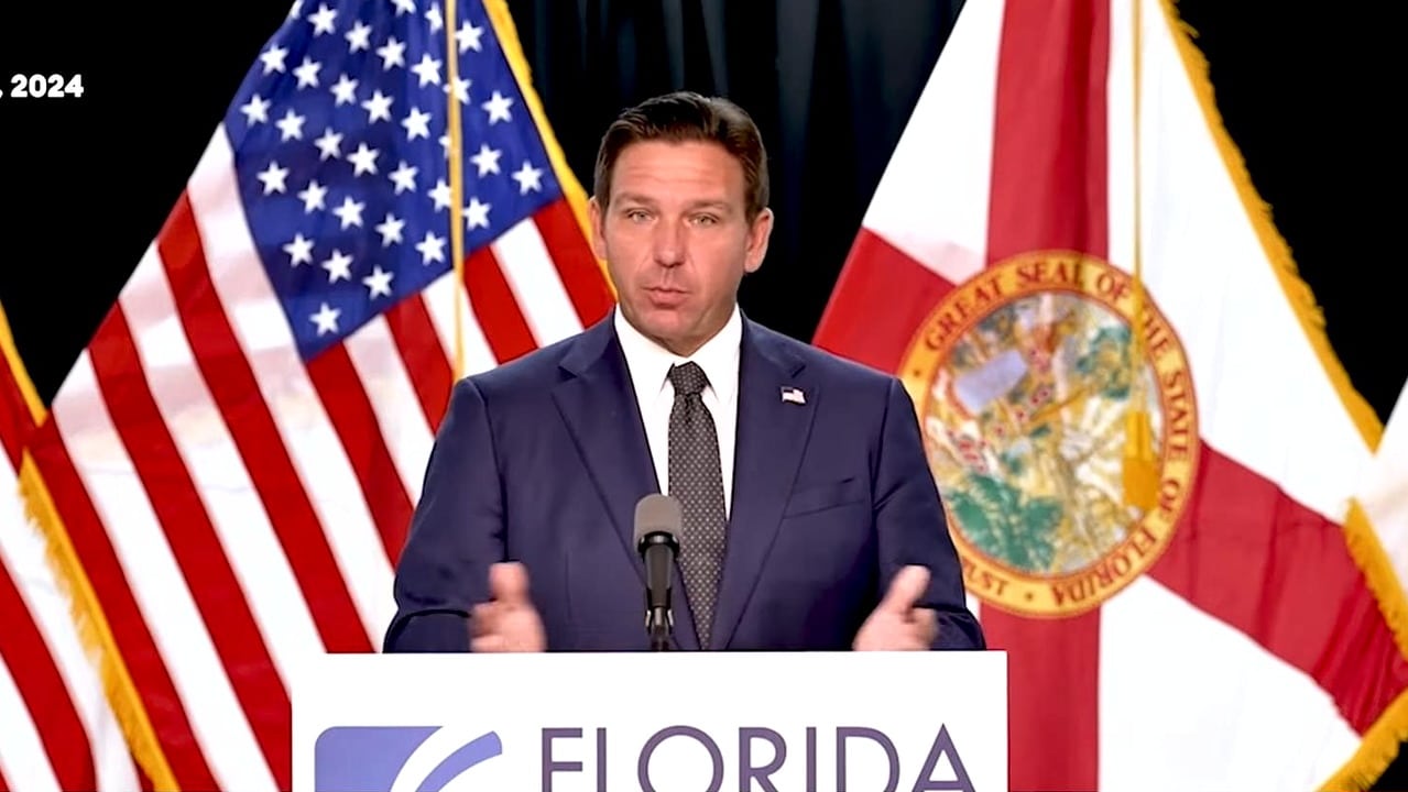 Thống đốc tiểu bang Florida Ron DeStantis trong cuộc họp báo hôm Thứ Hai 16/9/2024 (ảnh cắt từ video)