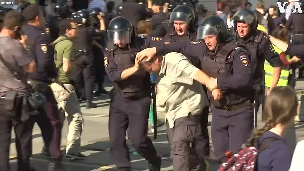 Cảnh sát Moscow đã dùng bạo lực để giải tán hàng ngàn người đổ xuống những con đường thủ đô từ thứ Bảy nhằm biểu tình phản đối cơ quan bầu cử thành phố. Nhiều người biểu tình bị cho là đã bị cảnh sát đánh gãy tay, chân và chảy máu đầu. Cảnh sát nói họ có hành động nghiêm túc như trên là do cuộc biểu tình chưa được chính quyền cấp phép.
