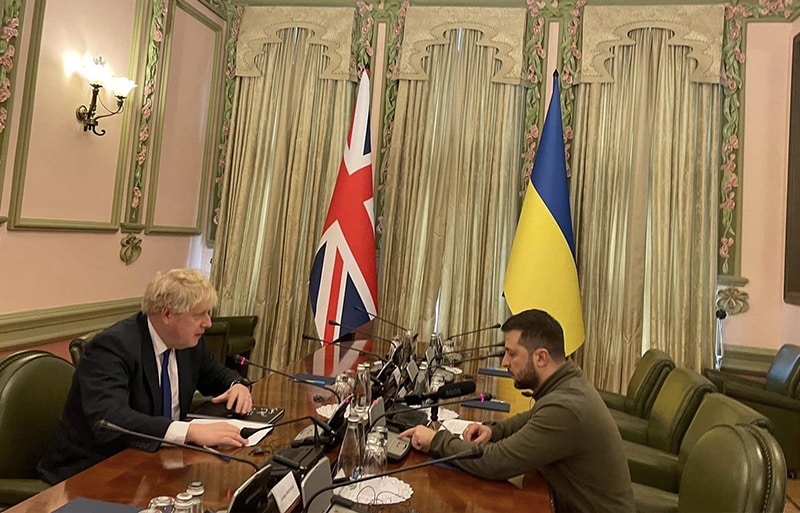 Một ngày trước đó, ông Johnson thông báo rằng Vương quốc Anh sẽ cung cấp thêm 100 triệu bảng Anh trong kế hoạch viện trợ quân sự, gồm tên lửa Starstreak, 800 tên lửa chống tăng và các loại bom, đạn trên không thường được gọi là máy bay không người lái tự sát.
