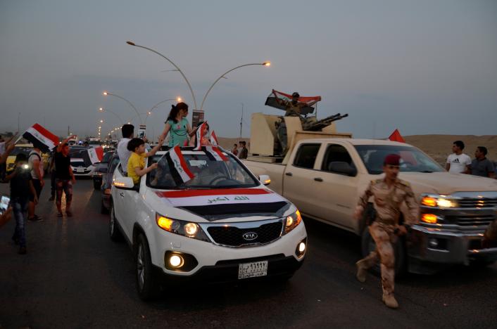 Lực lượng quân chính phủ Iraq vẫy cờ quốc gia khi Mosul được tuyên bố giải phóng hôm 9/7