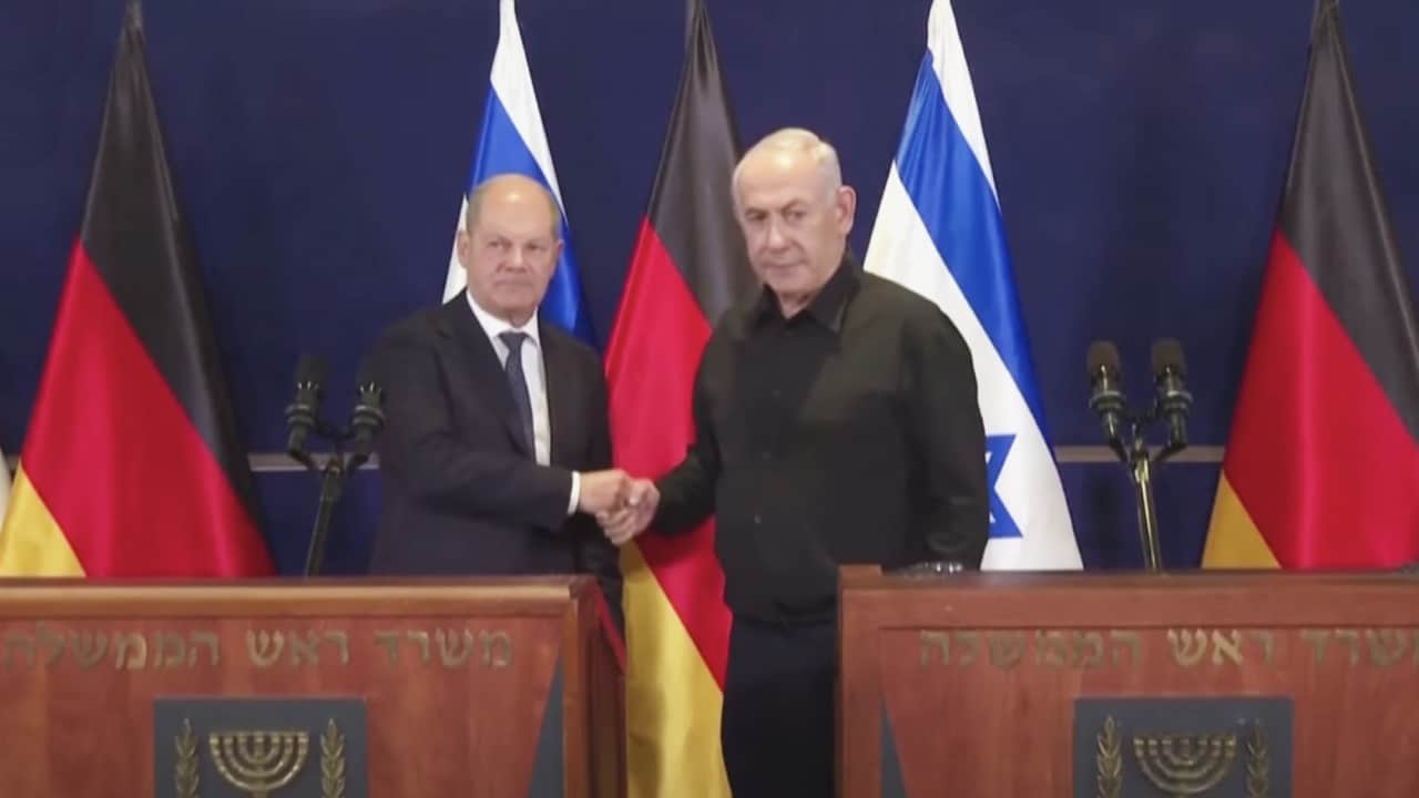 Thủ tướng Đức Olaf Scholz, đứng cạnh ông Netanyahu, trả lời rằng vị trí của Đức là sát cánh cùng Israel. Ông Scholz đáp lại quan điểm của ông Netanyahu về Chủ nghĩa Quốc xã khi nước Đức gần một thế kỷ trước đã bầu ra một chính phủ xã hội chủ nghĩa quốc gia chống Do Thái. Chính phủ do Adolf Hitler lãnh đạo, dẫn đến nạn diệt chủng Holocaust.