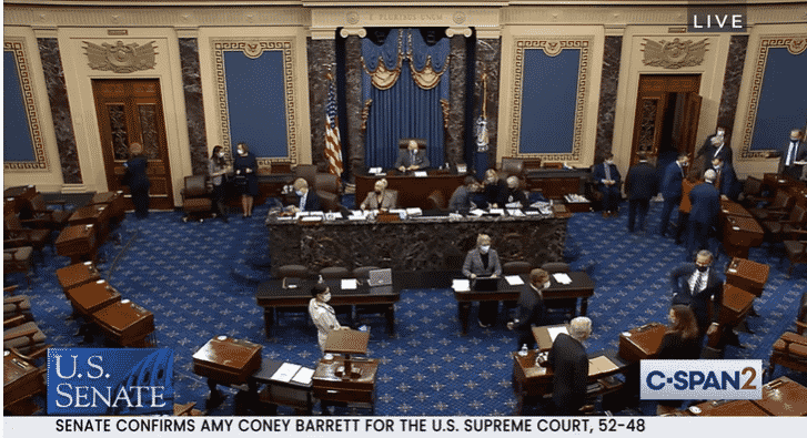 Thượng viện Mỹ vừa bỏ phiếu chính thức xác nhận Thẩm phán Amy Coney Barrett vào Tối cao Pháp viện với 52 phiếu tán thành và 48 phiếu phản đối. Thượng nghị sĩ Susan Collins (bang Maine) là thành viên Đảng Cộng hòa duy nhất gia nhập cùng toàn bộ Đảng Dân chủ tại Thượng viện bỏ phiếu chống.