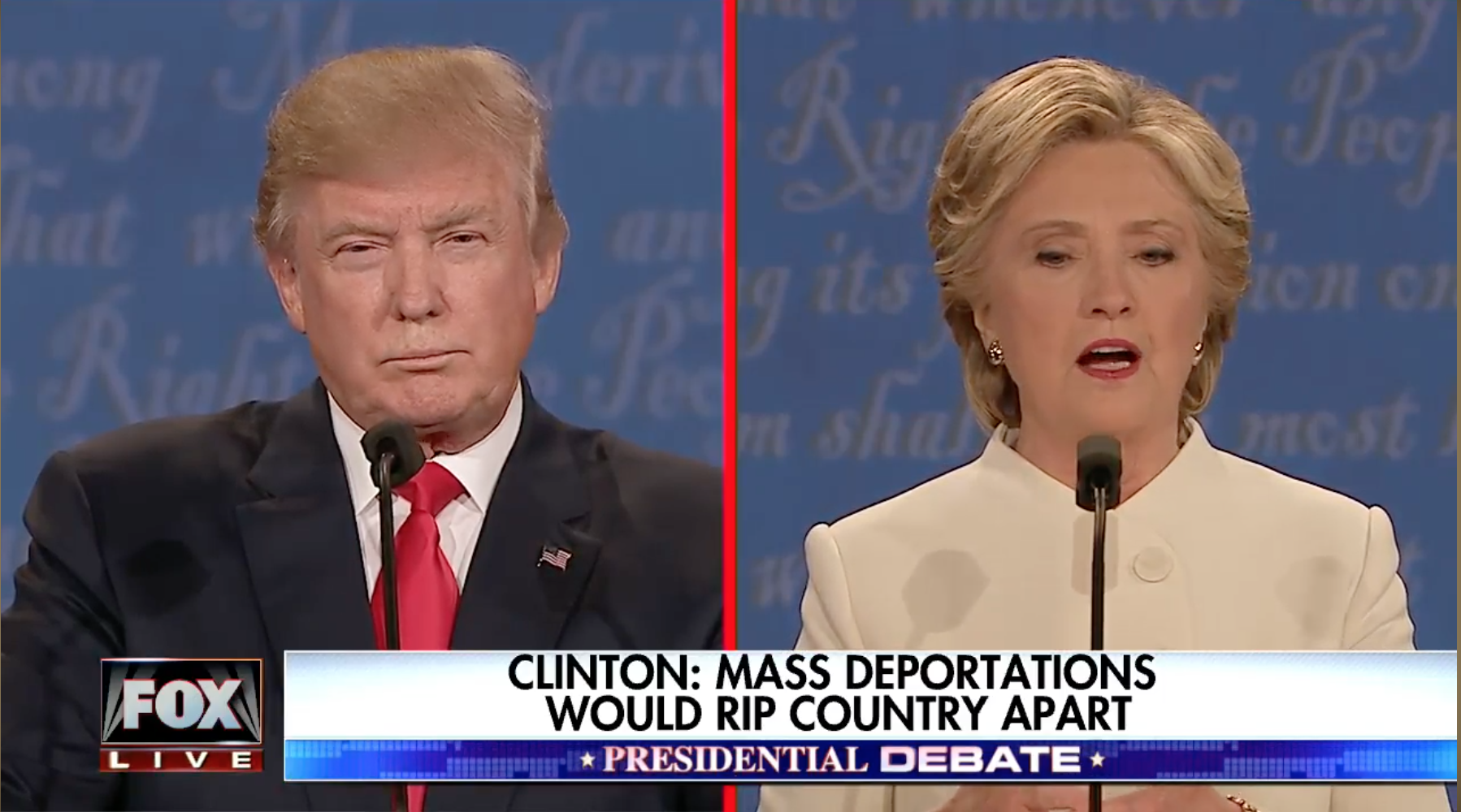 Wallace: Nhưng thưa ông, có một truyền thống ở đất nước này – thực ra là một trong những niềm tự hào – là sự chuyển giao quyền lực một cách hoà bình và rằng bất kể một chiến dịch tranh cử có khó khăn thế nào, thì đến cuối cùng người thua quốc thừa nhận người chiến thắng. Tôi không nói rằng ông chắc chắn sẽ thua hoặc thắng, nhưng người thua cuộc chấp nhận người thắng cuộc và cả quốc gia sẽ đoàn kết lại cùng nhau vì những điều tốt đẹp cho đất nước này. Có phải ông đang nói rằng ông không sẵn sàng cam kết với nguyên tắc này?
