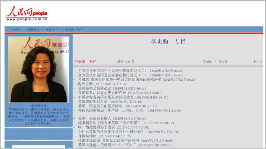 Tên người đại diện này là Christine Ching Kui Lee đến từ Hồng Kông. Thông tin cho thấy, Christine Ching Kui Lee có quan hệ mật thiết với ĐCSTQ từ nhiều năm qua: trước đây khi Tập Cận Bình đến thăm Vương quốc Anh, đã có mặt Christine Ching Kui Lee; người này cũng tổ chức tiệc đón năm mới tại Hồng Kông với sự tham dự của các quan chức từ Văn phòng Liên lạc ĐCSTQ, tờ Nhân dân Nhật báo của ĐCSTQ có một chuyên mục về Christine Ching Kui Lee.
