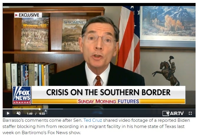 Trong chương trình “Sunday Morning Futures” của Fox News phát sóng vào tuần này, Thượng nghị sĩ Đảng Cộng hòa John Barrasso (bang Wyoming) đã thảo luận về chuyến đi thăm biên giới của ông cùng với một phái đoàn Đảng Cộng hòa của Thượng viện Hoa Kỳ.