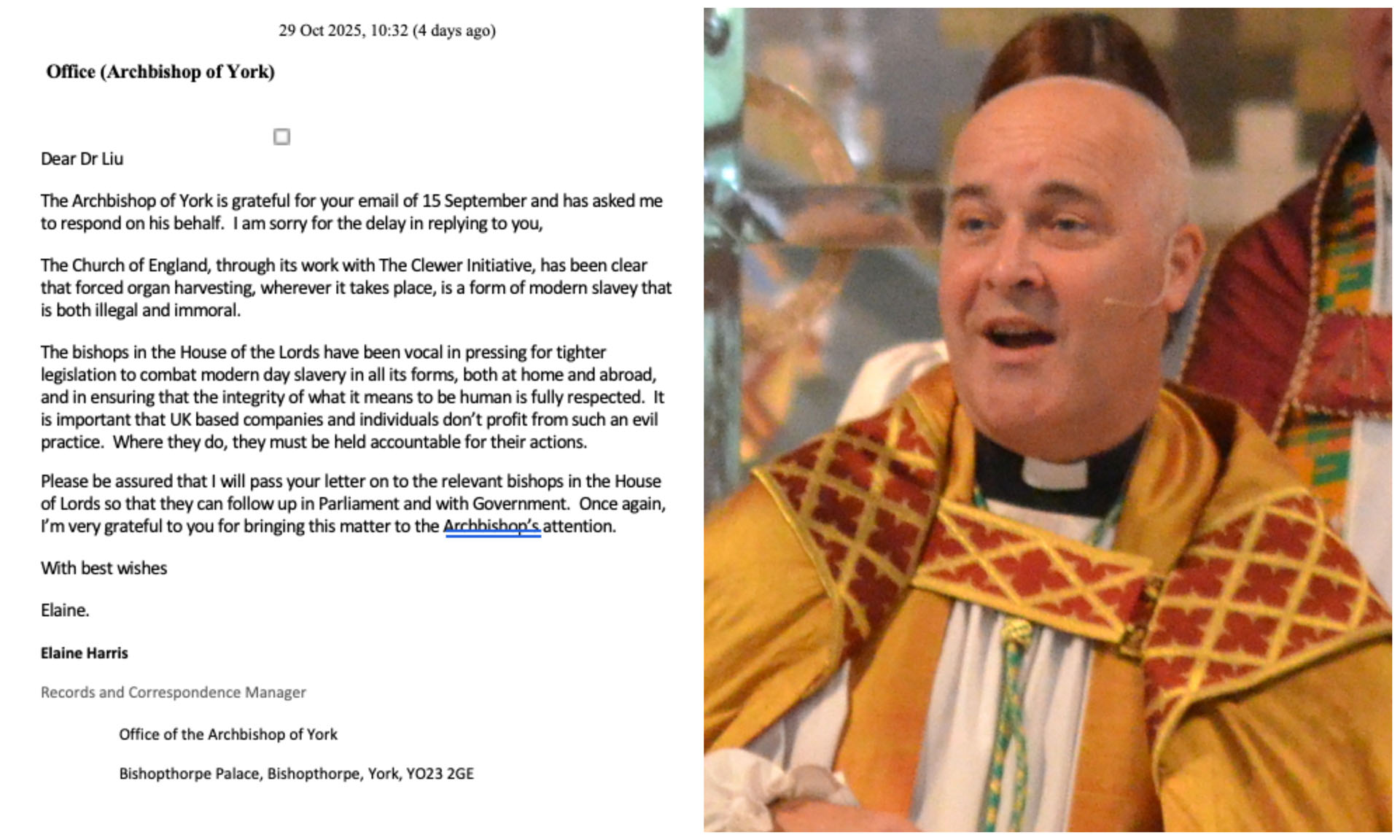 Theo “Tổng Giám mục York thuộc Giáo hội Anh: Cưỡng bức thu hoạch nội tạng là hành vi phi pháp và vô đạo đức”