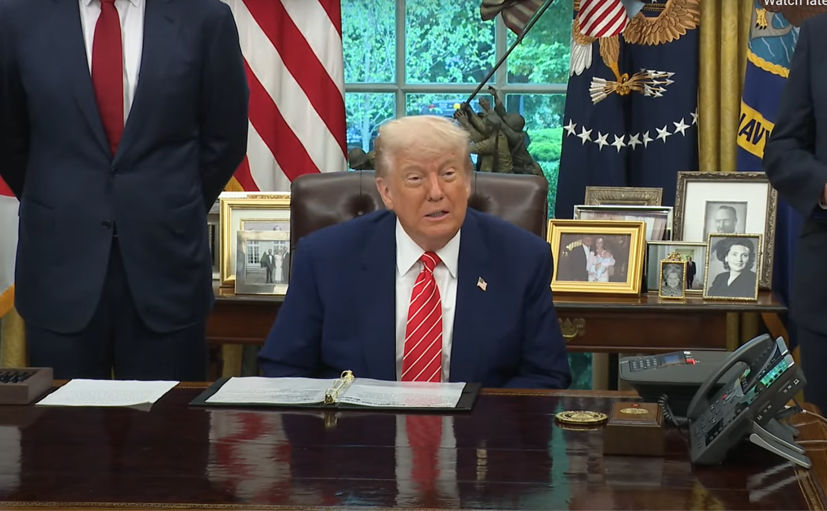 Tổng thống Trump công bố nội dung thỏa thuận thương mại Mỹ Anh tại Phòng Bầu dục hôm 8/5. Ảnh Nhà Trắng.